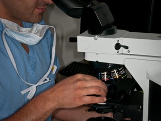 a Mohs surgeon acts as both the surgeon and the pathologist. In other words, the same person cuts the cancerous tissue and analyzes it to make sure all the cancer has been removed. This activity happens in real time while the patient is waiting. When the Mohs surgeon analyzes the tissue and notices there is more growth at a specific point, he or she knows exactly where to go for more removal. In traditional surgery, on the other hand, a second person – the pathologist – would analyze the tissue and then explain to the surgeon where the surgeon needed to go to find and remove the remaining cancerous tissue.